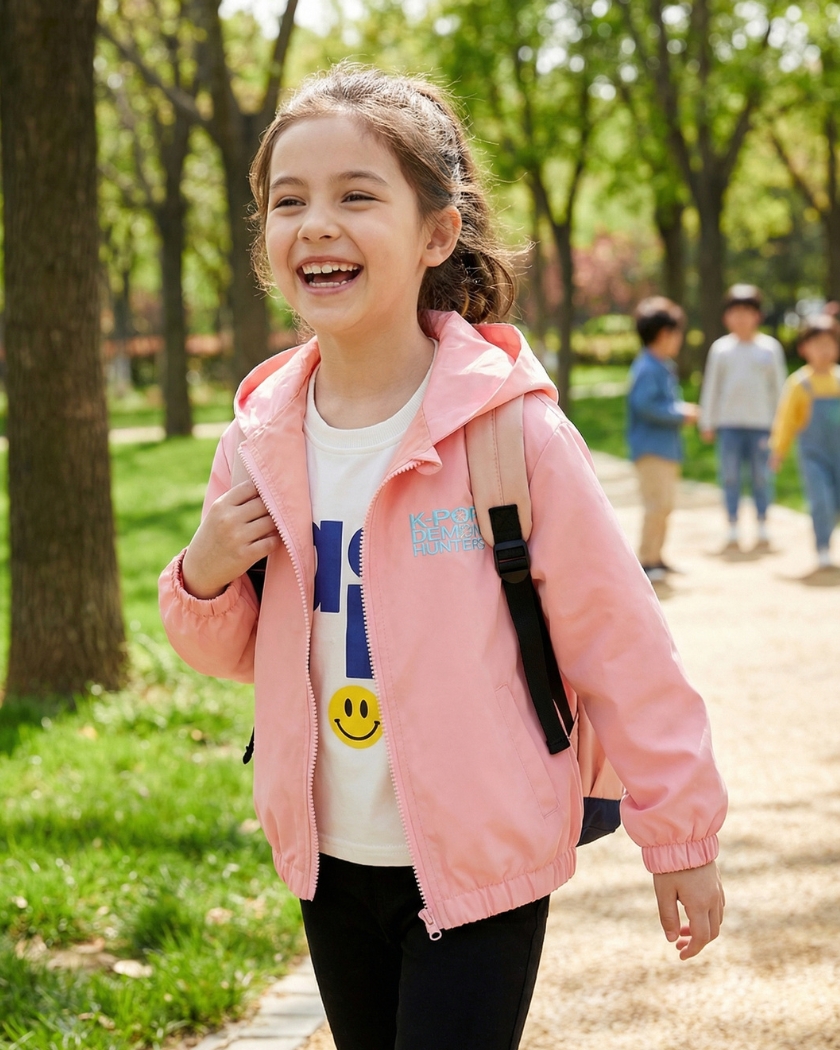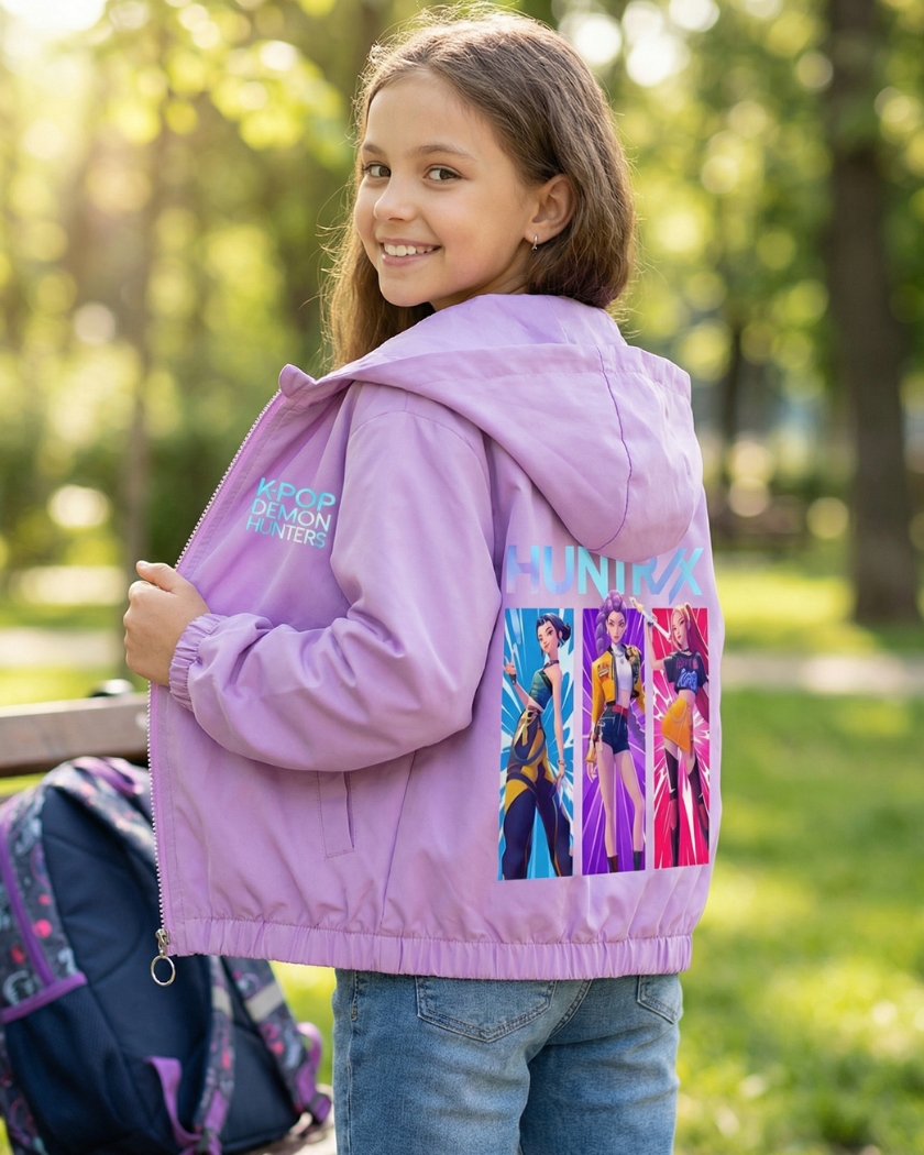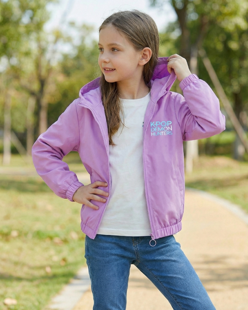 Imaginez votre fille bravant les intempรฉries avec la force des gardiennes du Honmoon. Ce blouson coupe-vent est une barriรจre protectrice idรฉale contre le froid. Conรงu pour les fans de Kpop Demon Hunters, il offre une impermรฉabilitรฉ remarquable.