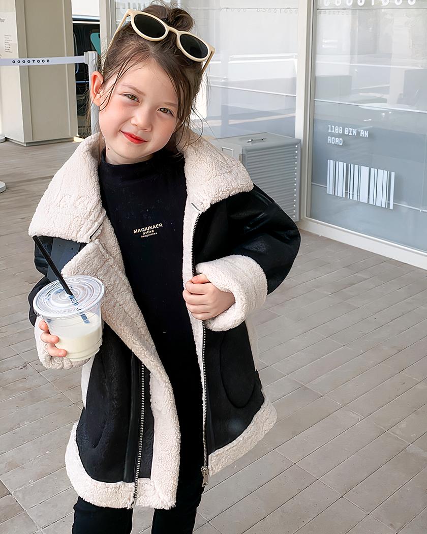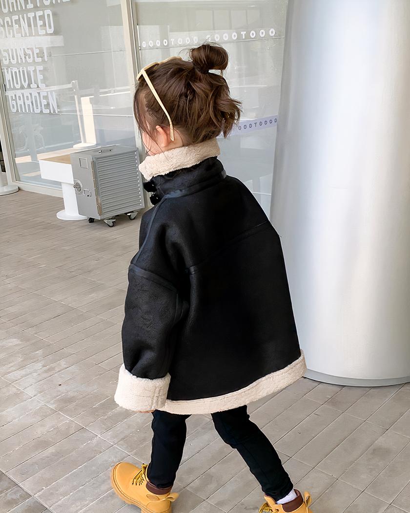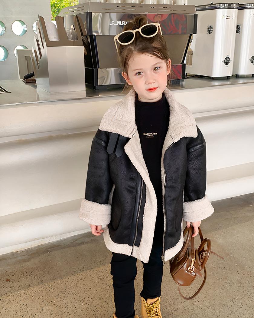 Le similicuir noir offre une apparence chic et sophistiquée, tandis que le col à rabat en fausse fourrure beige ajoute une touche de douceur et de confort. Votre fille pourra être à la fois à l’aise et à la mode avec ce blouson.