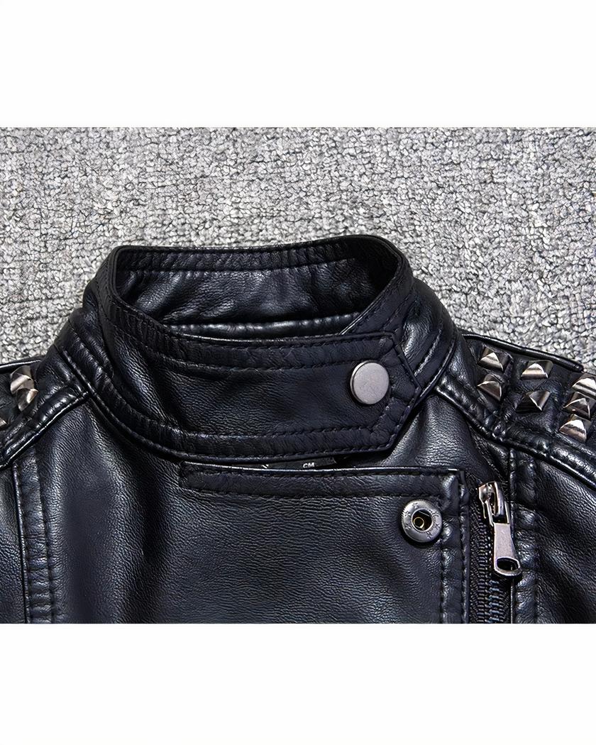 Ce blouson possède un design rockeur qui plaira à coup sûr aux jeunes garçons en quête de style. Les imitations de clous sur les épaules ajoutent une touche rebelle, donnant à ce vêtement un caractère unique et original.