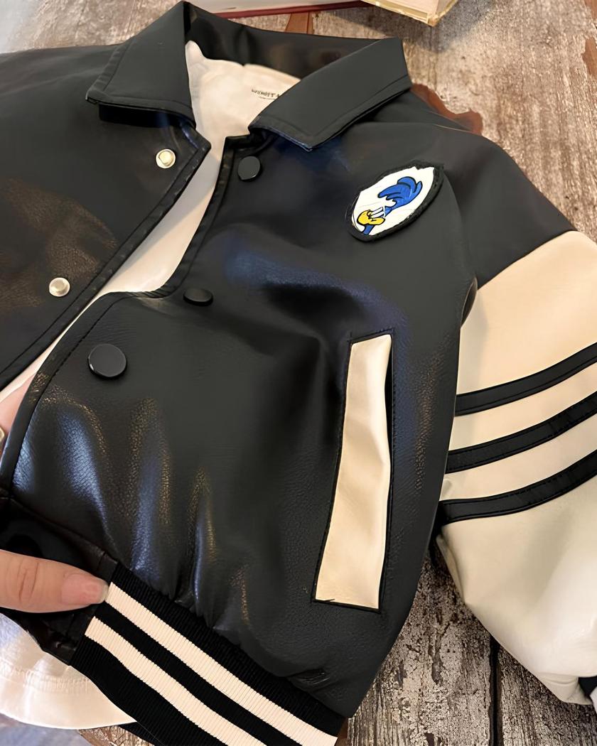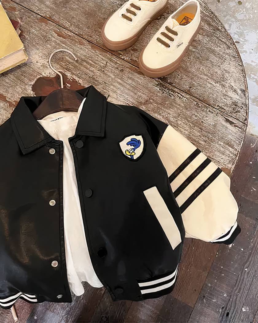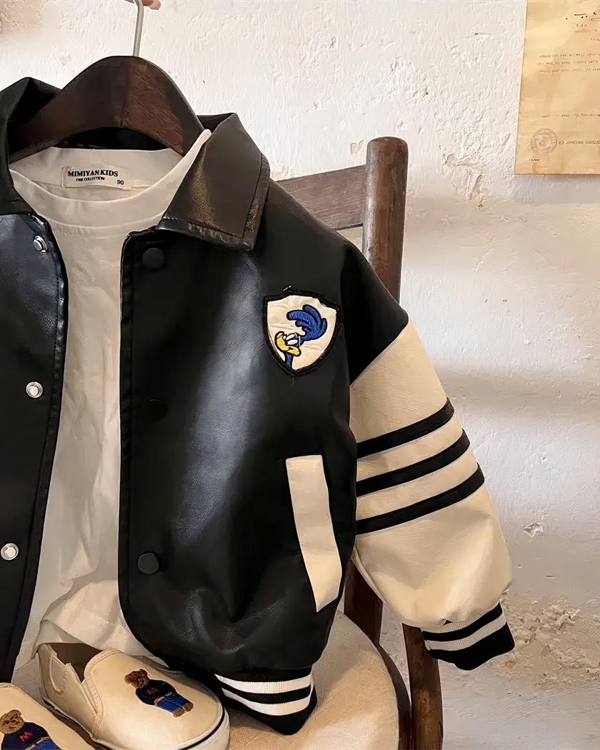 Ce blouson en simili cuir pour garçon affiche une coupe large de style américain, directement inspirée des supporters de baseball. Son design dynamique et moderne donnera à votre fils un look tendance et décontracté.