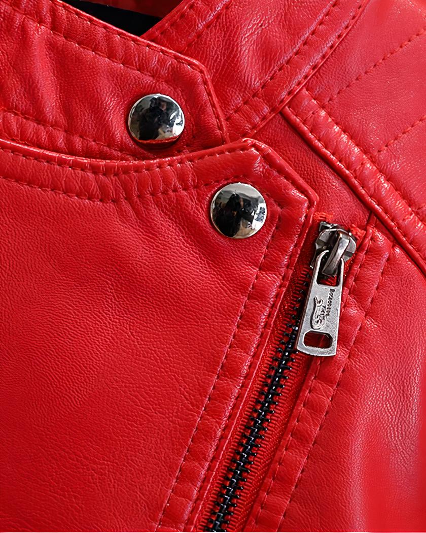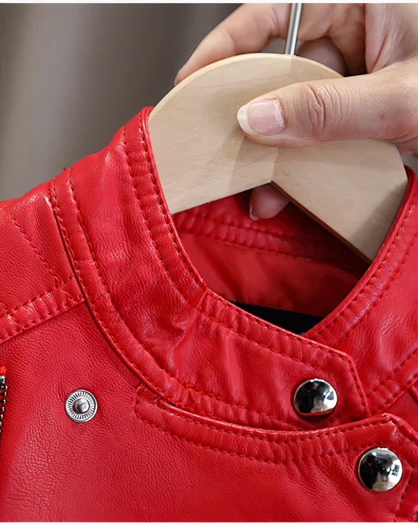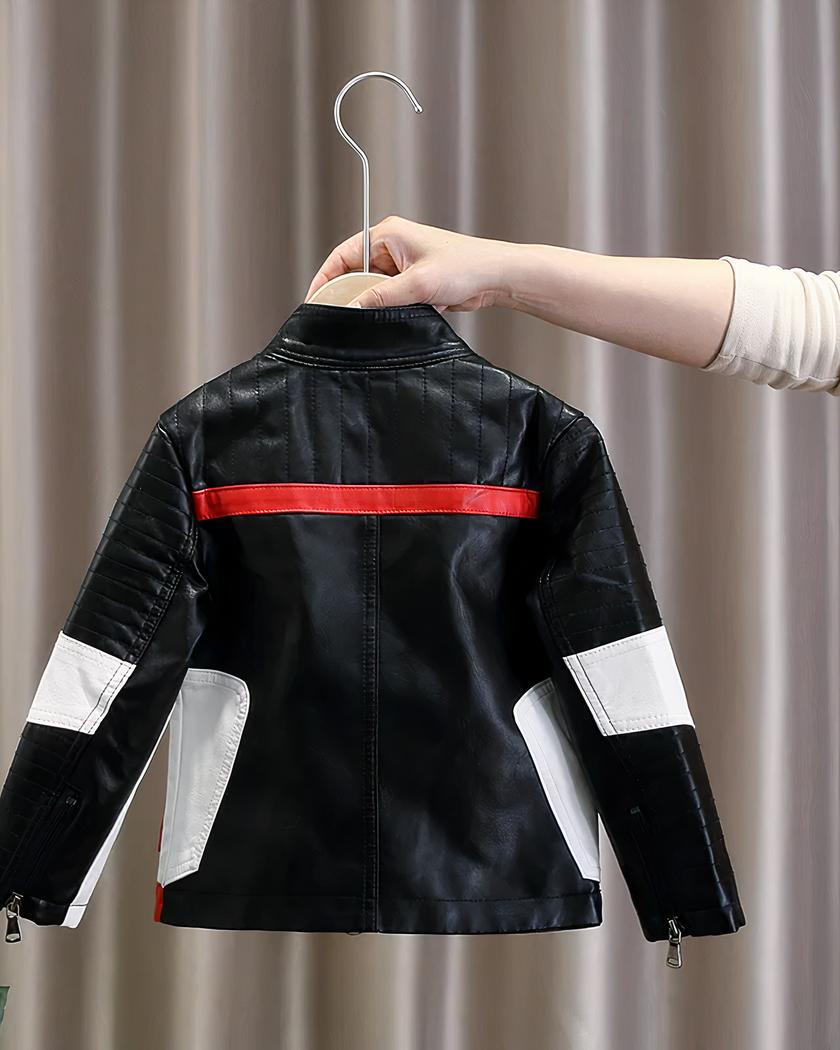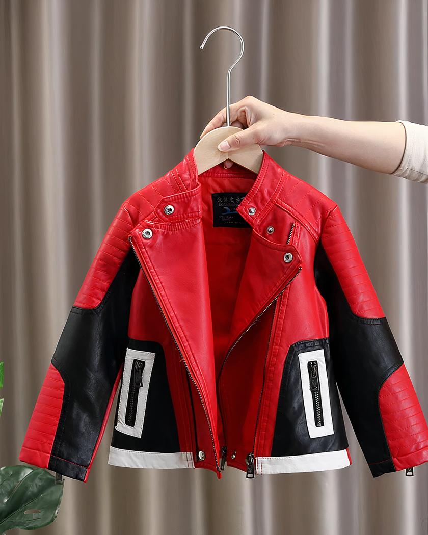 Le noir reste la couleur intemporelle des motards, le blanc donne un effet chic et le rouge donne de la visibilité à ce blouson en simili cuir. Votre enfant pourra porter avec fierté ce blouson de motard.