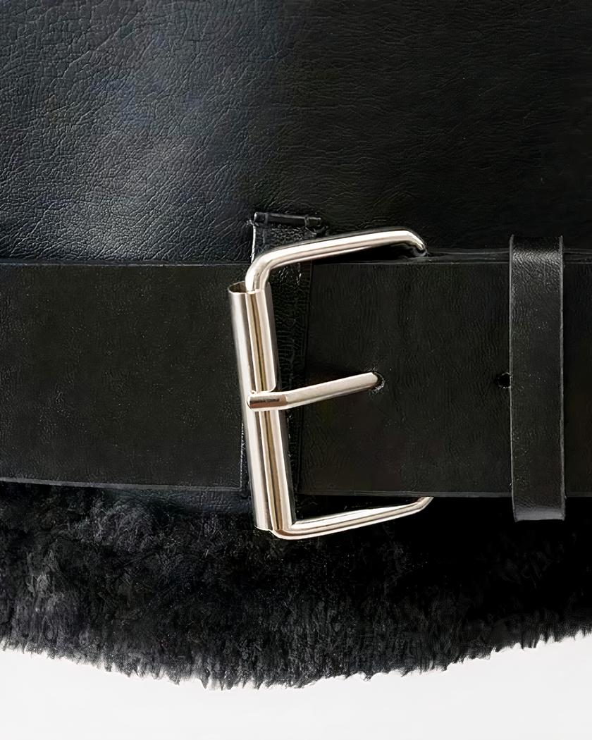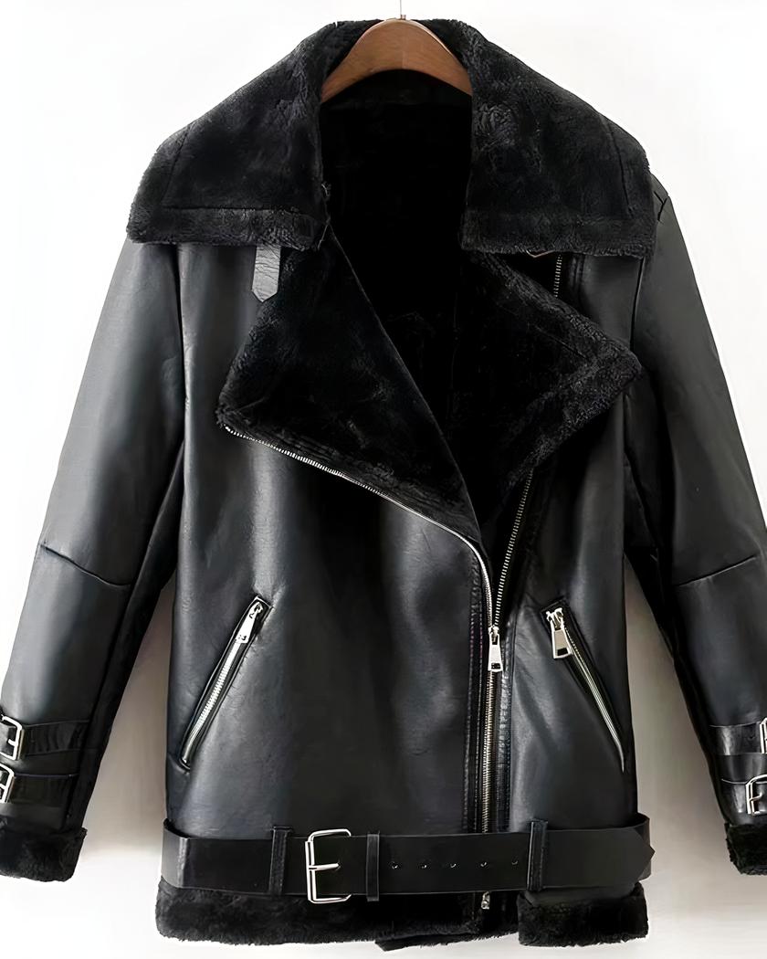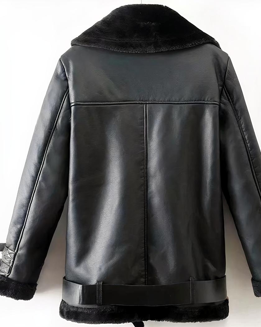 En simili cuir de haute qualité, ce blouson offre une sensation luxueuse au toucher et une durabilité exceptionnelle. Son aspect lisse et brillant lui confère une allure sophistiquée, tandis que sa coupe ajustée met en valeur la silhouette féminine avec élégance.