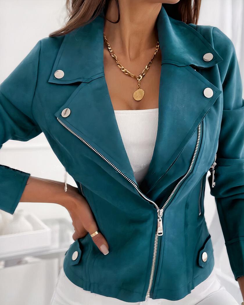 Ajoutez une touche d’élégance à vos sorties avec notre blouson en style daim pour femme, disponible en bleu ou en marron, chacun avec sa propre signification. Optez pour le bleu pour une allure élégante et moderne, parfait pour les dîners entre amis ou les soirées en ville.
