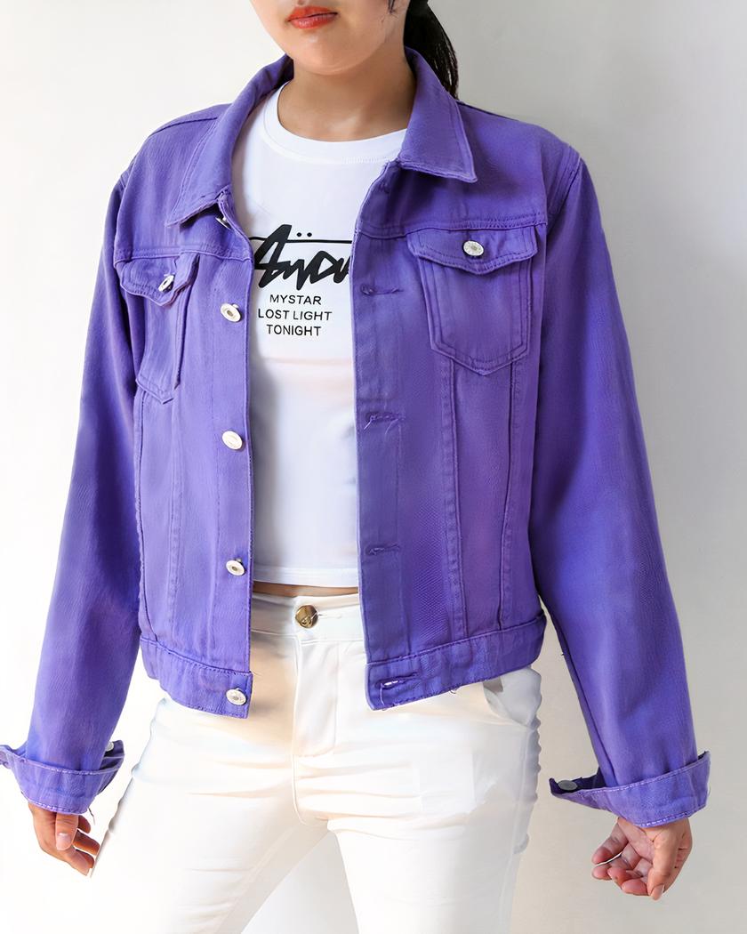 Misez sur la tendance avec ce blouson en jean violet pour femme. Son coloris original apporte une note de modernité et de féminité à votre garde-robe.